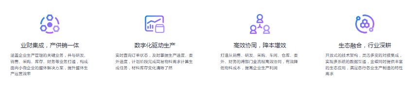 聚焦小微工贸企业,支持简单生产,提供产供销一体化管理解决方案& 丰富的生态应用加持,满足各领域/行业特性需求