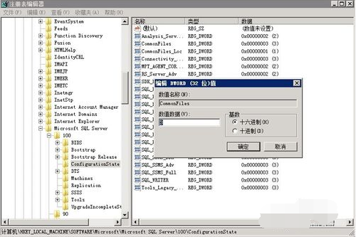 1:先修改注册表:HKEY_LOCAL_MACHINE/SOFTWARE/Microsoft/Microsoft SQL Server/100/ConfigurationState里的 CommonFiles 值改成 3
