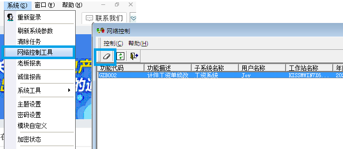 1、在软件界面打开【系统】-【网络控制工具】,弹出【网络控制】窗口;