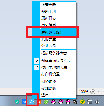 1、点电脑右下角金蝶图标 右键【虚拟磁盘(S:)】
