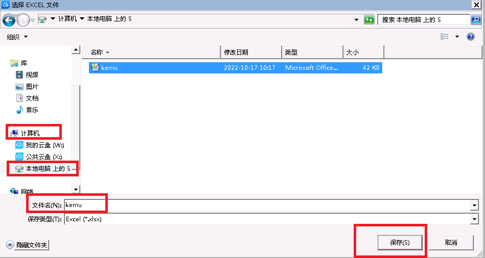 保存路径选择【计算机】--【本地电脑上的S】输入文件名 点【保存】