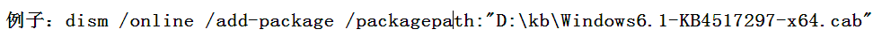 dism /online /add-package /packagepath:"X:路径文件名.cab"