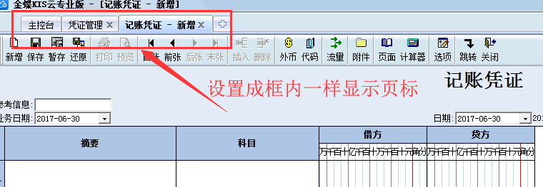 打开录入凭证或科目又或者凭证管理,就看不到“主控台”标题,只能是关闭其他操作,才会返回主控台界面。