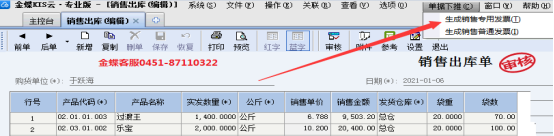 注:基础设置→系统参数→业务参数→销售库单审核自动生成销售发票,如果选它,销售出库单审核时系统会自动生成销售发票。