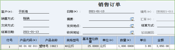 1、【销售管理】→【销售订单】,打开销售订单编辑界面,录入并审核