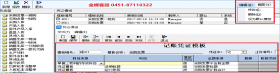 选择【事务类型】新增模板,选择科目来源、金额来源,把模板设置为默认模板