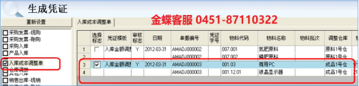 (2)【存货核算】→【入库成本调整单】→【重设】→【按单生成凭证】→【生成凭证】