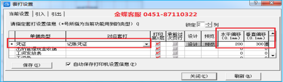 凭证界面【文件】--【套打设置】选择凭证对应套打,调水平偏移和垂直偏移
