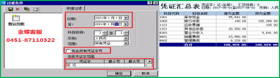 选择日期范围,汇总所有凭证选”“包含所有凭证字号”,想按凭证号汇总在“选择凭证字范围”输入凭证号,如汇总50-100号,最小号输入50,最大号输100