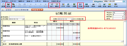 2、会计分录序时簿工具栏和菜单栏,