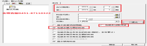 包括余额为零的科目 | 将余额为零的科目显示出来。 |
