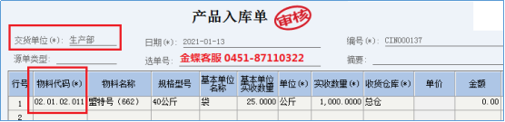 (2)点击【核算】系统把单价与金额自动核算到当期的产品入库单上。