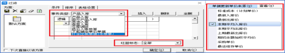 事务类型:分别选择〖红字出库单据(无源单)〗、〖盘盈入库〗、〖仓库调拨〗、〖其他入库单〗、〖不能确定单价单据〗进入。红蓝标志选全部。