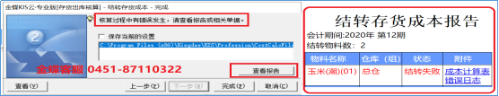 (3)在次进行【存货出库核算】,直到【查看报告】里原材料及包装物没有(红色错误报告)