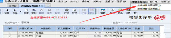 注:系统设置→系统设置→销售管理→系统设置→销售系统选项→销售库单审核自动生成销售发票,如果选它,销售出库单审核时系统会自动生成销售发票。