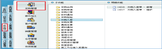 3、【供应链】→【采购管理】→【外购入库】→【外购入库维护】,“过滤”界面,事务类型选‘采购入库’ ,可以对采购入库单进行查询、修改、审核、删除、下查、下推等操作