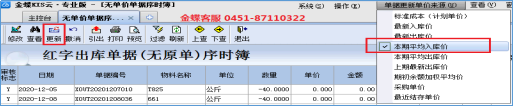 ,事务类型选【红字出库单据(无原单)】,【单据单价更新来源】选择【本期平均入库价】,点【更新】,如还有单据价格没核算上,可以选择其他的单据单价来源更新。