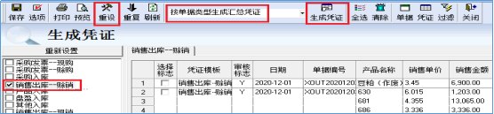 选择【销售出库--赊销】→【重设】→【按单据类型汇总生成凭证】→【生成凭证】