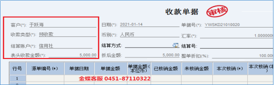 【财务会计】→【应收款管理】→【收款】→【收款单新增】,打开收款单界面,录入并审核